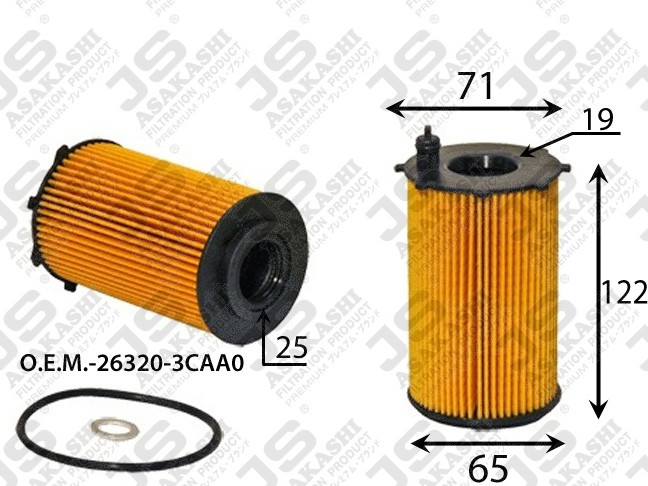 Фильтр масляный / передний JS ASAKASHI для KIA Sorento 2011- Hyundai Santa Fe 2010-; стандартный; OE-9306; (EO-28080 TGC-9306) OE9306 263203CAA0 EO28080